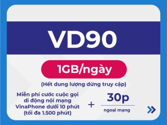 VD90 30 Ngày 90.000đ – 1 GB data/ngày (hết dung lượng dừng truy cập). – Miễn phí các cuộc gọi nội mạng Vinaphone dưới 10 phút (Tối đa 1500 phút). – 30 phút gọi […]