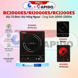Tên sản phẩm: Bếp Hồng Ngoại Đơn Rapido RC2000ES (2000w)/ RC2200ES (2200w) – Bếp Từ Đơn RI2000ES ( Công Suất 2000w) – Hàng Chính Hãng – Bảo Hành 12 Tháng – Tiện lợi trong gia đình