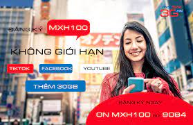 MXH100: lưu lượng data lên tới 30GB tốc độ cao/ tháng, tặng kèm data không giới hạn truy cập Facebook, Youtube, Tiktok.