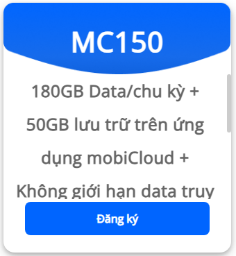1 MC150 https://ctvmbf.vn/goi-cuoc-uu-dai/chi-tiet-goi-cuoc-MC150?rf=091ISA                      150,000 30 Ngày 180GB Data/chu kỳ + 50GB lưu trữ trên ứng dụng mobiCloud + Không giới hạn data truy cập Tiktok, Youtube, Facebook…